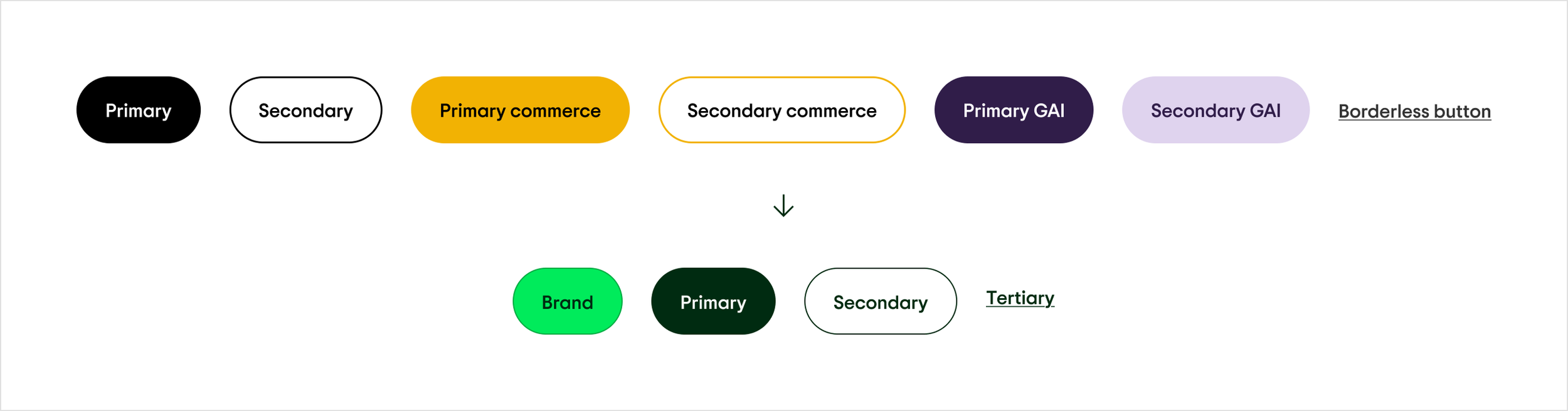 Our revenue-sensitive buttons needed a solution that would work across all business units. A system was developed that reduced the component variants and added an all encompassing Brand Button that would be employed to highlight the top-worthy action on each screen.